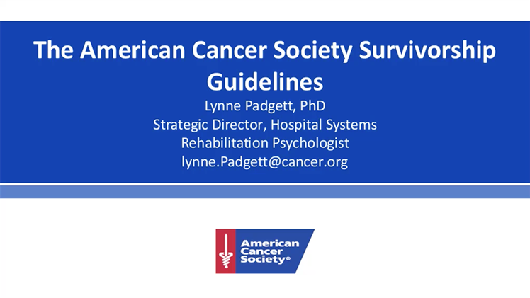 This is part one of a free, interactive three-part webinar series on Survivorship hosted by the American Cancer Society. The webinars will include information about the Commission on Cancer survivorship care planning standard and the role of National Cancer Database data, review of the newly released American Cancer Society cancer survivorship care guidelines and a presentation by healthcare systems implementing survivorship programs.