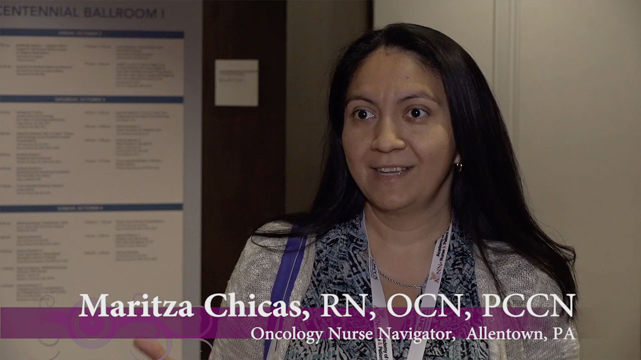 Maritza Chicas, RN, OCN, PCCN, talks about one of the annual conference presentations that covered the Commission on Cancer standards and how it was relevant to her center as they are trying to implement these standards.